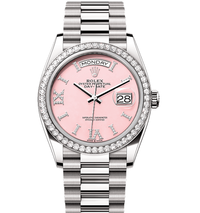 Rolex DayDate 36mm Pink Pearl With Diamond Bezel Superclone quantity
