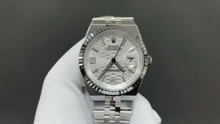 | Band Material | Stainless Steel and White Gold (Flat Jubilee) |